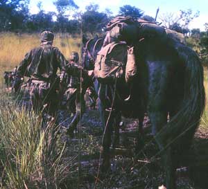 (para os homens e cavalos) em cavalo de baste, que