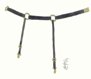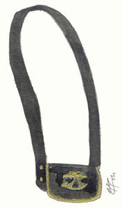 De couro preto de argolas, tendo na frente uma chapa
