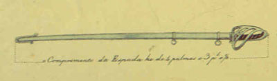 de comprimento, um pouco curva, com guarda mão