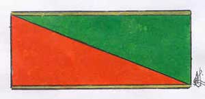 Braçal verde e encarnado bipartido na diagonal,
