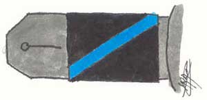 a 5cm da costura do ombro, uma granada azul, fig.