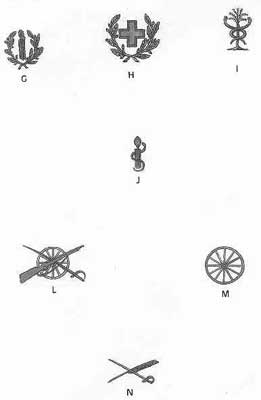 tinham na gola o emblema da Arma, sendo de metal oxidado