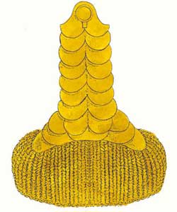 De escama de metal dourado, com a respectiva guarnição